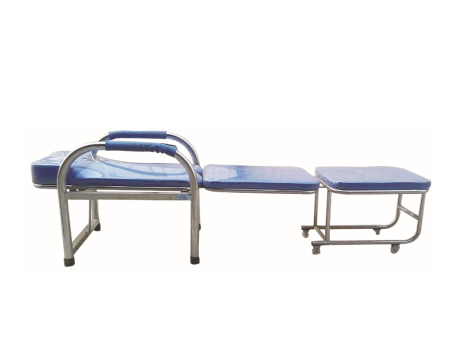 產(chǎn)品規(guī)格:600*550*550/900(mm) 展開:1850*550*400/550 (mm) 主管為φ38的管材 1.加固設(shè)計(jì),承重能力強(qiáng), 2.床腿裝有塑膠套腳,防止與地面摩擦而產(chǎn)生噪音。 3.采用高檔皮革,面料柔軟舒適,內(nèi)置加厚海綿,舒適度良好,環(huán)保無異味 耐磨度高。 3.頭枕設(shè)計(jì)柔軟舒適 頭枕設(shè)計(jì)高低適當(dāng) 有效呵護(hù)頸椎 4.滑輪設(shè)計(jì)移動(dòng)方便,底部有腳輪四個(gè),拉出時(shí)輕松靈活,無噪音,接觸地面的腳部配置塑料腳墊,防滑并保護(hù)地面 4.金屬部件表面采用高壓靜電噴塑 5.該產(chǎn)品適用醫(yī)院病人住院陪護(hù)用椅,輕松展開 一秒折疊,白天收起是一張椅子,晚上拉開便是一張床。 選配:ABS材質(zhì)仿實(shí)木扶手